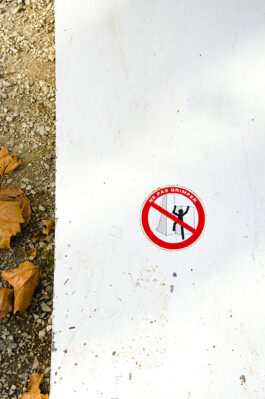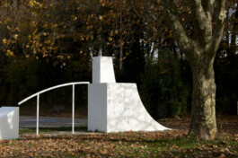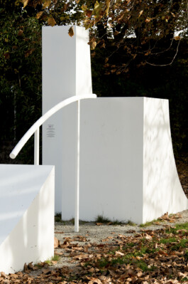 It's funny to see where this sculpture has been placed, right next to a skatepark (inspired by this terrain), and that it's forbidden to climb on it... The symbol before the sport?